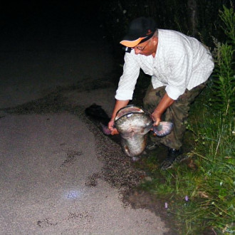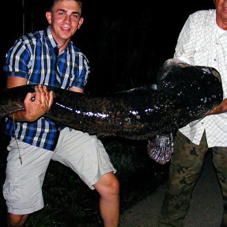 W dniu 8 Lipca br. Kolega Stanisław Laskowski złowił o godz. 22.00 suma długości 185 cm i wadze 65 kg. Hol ryby trwał trwał około 30 min. W podebraniu pomagał młodszy kolega Marcin Marjański oraz Paweł Wyrwał.